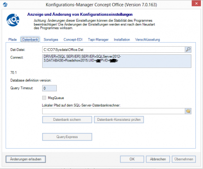 Im Feld Connect wird der Verbindungspfad (Connect-String) zur Datenbank von Concept Office angezeigt.