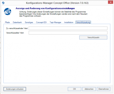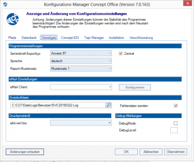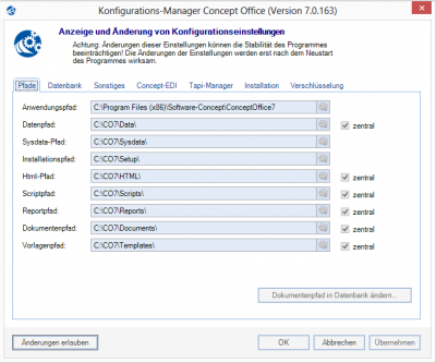 Das Modul zeigt zentrale und nutzeranhängige Programmeinstellungen von Concept Office.