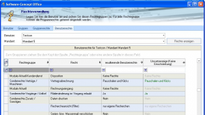 Die Rechteverwaltung ist eine eigenständige Windows-Anwendung. Mit ihrer Hilfe können Zugriffsmöglichkeiten auf Programmteile von Concept Office für unterschiedliche Benutzer separat eingestellt werden.