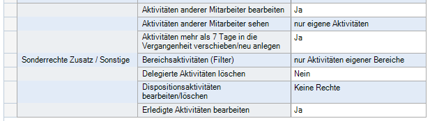 Alle nicht anderweitig einordenbaren Rechte sind hier abgelegt. Die Sonderrechte werden im Kontext des jeweiligen Moduls beschrieben und sind entsprechend verlinkt.