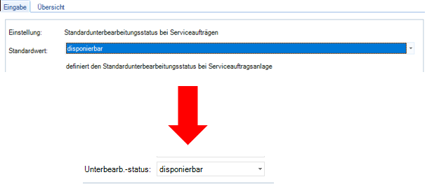 Auch hier ist es möglich einen Standardwert festzulegen und zu speichern. Jedoch erscheint hier der Unterbearbeitungsstatus erst nach der Speicherung des Serviceauftrages.