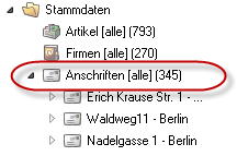 Im Unterbaum einer Firma werden nur die der Firma zugeordneten Anschriften angezeigt. Außerdem werden bei Neuanlage einer Anschrift die Zuordnungsdaten vorbelegt.