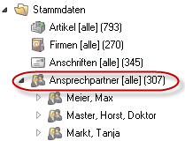 Als Ansprechpartner werden Personenkontakte zu den im Firmenstamm gespeicherten Kunden und Lieferanten bezeichnet. Ein Ansprechpartner kann eigene Verbindungen besitzen. Er ist stets genau einer Firma zugeordnet.