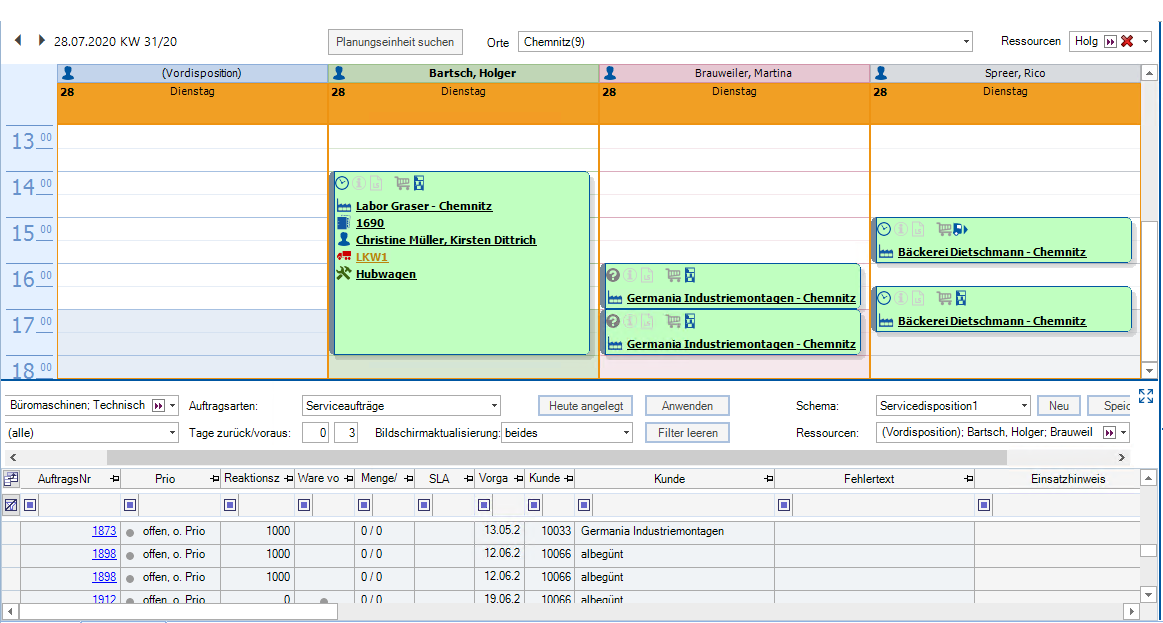 Es können mehrere Dispositionen angelegt werden, um zum Beispiel Einsätze für unterschiedliche Techniker oder an unterschiedlichen Tagen zu planen.