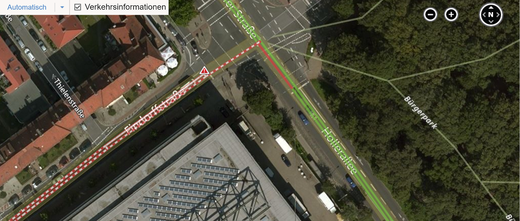 Über den Haken Verkehrsinformationen werden diese als zusätzlicher Layer eingeblendet.