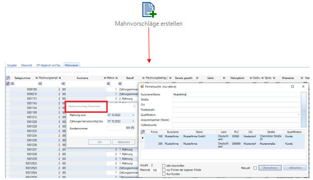 Die Funktion Mahnvorschläge erstellen liest neue Belege ein.