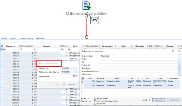 Die Funktion Mahnvorschläge erstellen liest neue Belege ein.