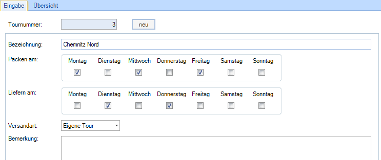 In der Rubrik „Liefern am:“ wird hinterlegt, wann die Touren ausgeliefert werden