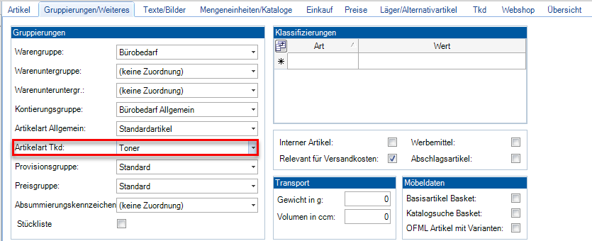 Alle Verbrauchsmaterialien (Toner, Trommeln, Resttonerbehälter), sowohl original als auch kompatibel, müssen mit der entsprechenden ArtikelartTKD gekennzeichnet werden.