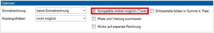 Die Verwendung alternativer Toner kann am Vertrag in der Registerkarte Rechnungsempfänger / Optionen freigeschaltet werden.