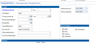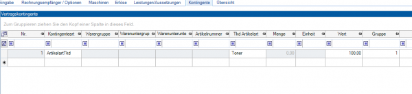 Dieser bestimmt den Zeitraum, das Intervall, den Erlösartikel. Bei der Abrechnung werden die auf das Kontingent gebuchten Leistungen gegen den Kontingentwert geprüft. Bei Überschreitungen wird entsprechend nachberechnet.