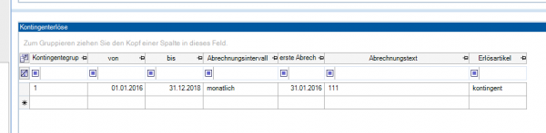 Für die periodische Abrechnung des Kontingentes wird ein Kontingenterlös verwendet.
