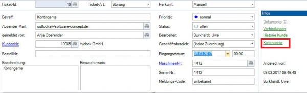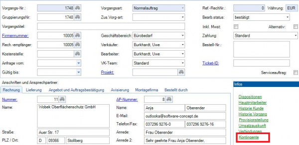 Es gibt jetzt die Möglichkeit, den aktuellen Status eines Kontingentes in folgenden Modulen einzusehen.