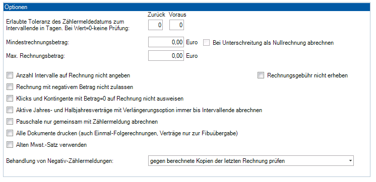 | Dieser Haken verhindert, dass nur Pauschalen auf der Rechnung stehen, weil eventuell eine Zählerstandsmeldung noch nicht erfolgte oder nicht freigegeben ist. |