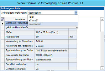 Bei optimaler Pflege Ihrer Artikeldaten, z.B. durch Verwendung Soennecken AMDP-Daten, werden in der ersten Reihe Bild, Mengeneinheiten, Artikelmerkmale und Dokumente angezeigt. Darunter Alternativen, Zubehör und Verbrauchsmaterial. Die dritte Reihe enthält neben den Kataloginformationen die 10 häufigsten Artikel, die der Kunde kauft aber noch nicht in diesem Vorgang enthalten sind. Daneben Artikel, welche andere Kunden auch kauften, wenn der aktuell markierte Artikel im Vorgang war.