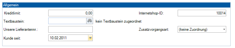 - Erfolgt keine Auswahl (Kundennr:=0), so werden die Kundensonderpreise zu allen Kunden mit einer Internetshop-ID ausgelesen. Die Internetshop-ID wird im Modul „Firmen“, in der Registerkarte „Kundendaten“, unter „Allgemein“, im Feld „Internetshop-ID“, hinterlegt.
