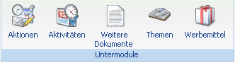 Die Untermodule filtern Daten, die mit dem ausgewählten Ansprechpartner in Verbindung stehen. Für folgende Daten kann solch eine Selektion durchgeführt werden: