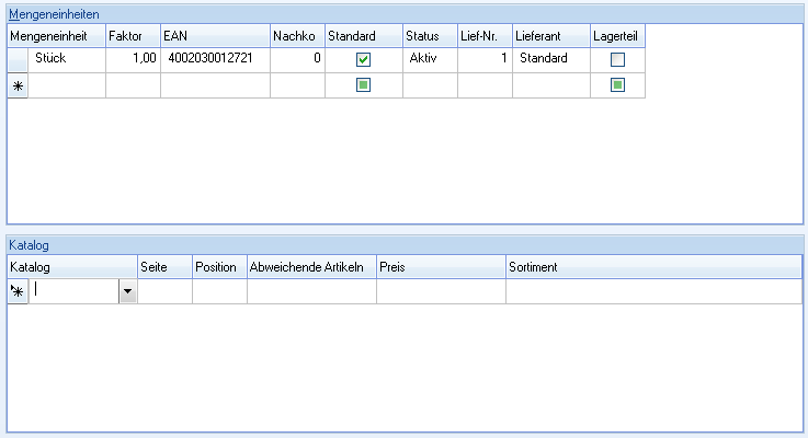 Registerkarte Mengeneinheiten/Kataloge