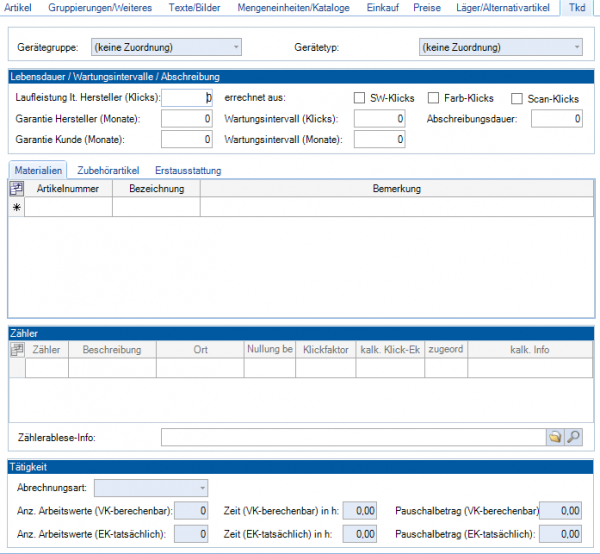 Artikelart TKD | Auswahlfeld | Für Maschinenauswertungen und Vertragsleistung |