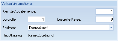 Die Losgröße im Verkauf ist ein Faktor (bezogen auf die Standardmengeneinheit) mit dem Sie einen Artikel verkaufen. Die Eingabe erfolgt in der Registerkarte Artikel, im Bereich Verkaufsinformationen.