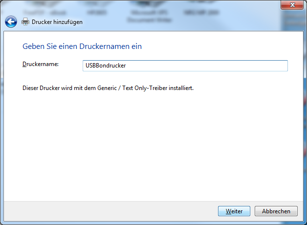 Im folgenden Dialogfenster „Geben Sie einen Druckernamen ein“, wird ein Druckername zugewiesen.