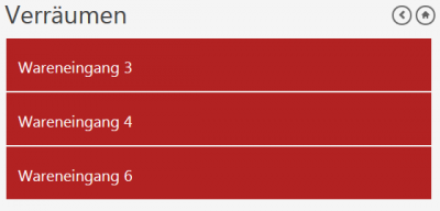 Unter Verräumen werden alle Umbuchungsläger angezeigt, in denen sich Artikel befinden, die noch auf die Lagerstellplätze verteilt werden müssen. Nach der Auswahl des Umbuchungslagers werden alle zu verräumenden Artikel des Umbuchungslagers angezeigt.