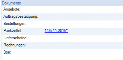 Wählen Sie Ja wird ein virtueller Packzettel erzeugt. Dieser steht an der üblichen Stelle als Link mit einem Stern und kann in der Seitenansicht eingesehen werden. Der virtuelle Packzettel ist flexibel und kann den Änderungen im Vorgang angepasst werden. Neu aufgenommene Positionen werden durch erneute Freigabe der Kommissionierung im Packzettel angefügt.
