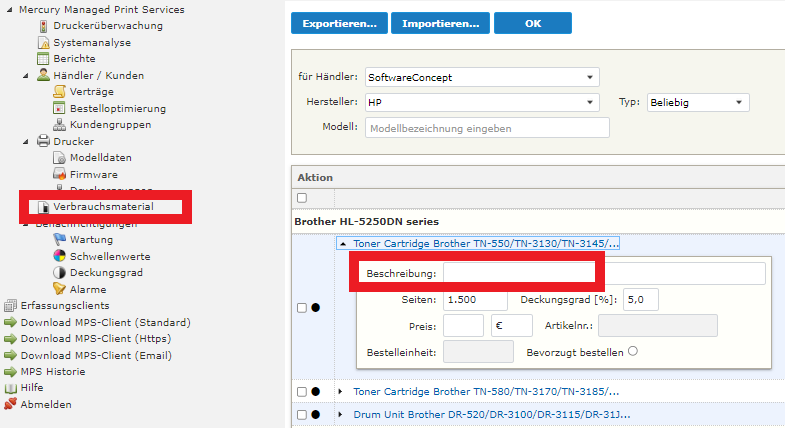 Damit Concept Office mit den Bestellungen umgehen kann, muss an jedem Verbrauchsmaterial eine CO-Artikelnummer hinterlegt werden.