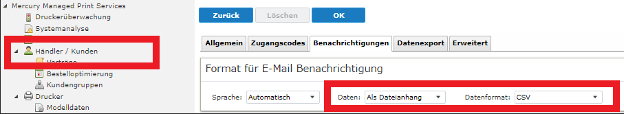 - Im Feld Daten Als Dateianhang und bei Datenformat CSV einstellen.