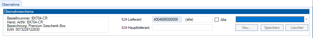 In diesem Abschnitt des ist für die Übernahm in den Artikelstamm die Betriebsnummer des Lieferanten, welche schon automatisch beim Aufruf des Schemas vorbelegt wird.