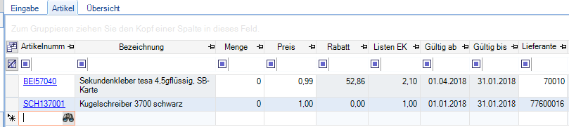 Im Modul Artikel können nun in der Registerkarte Einkauf die EK-Preise hinterlegt werden.