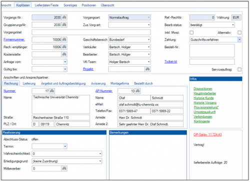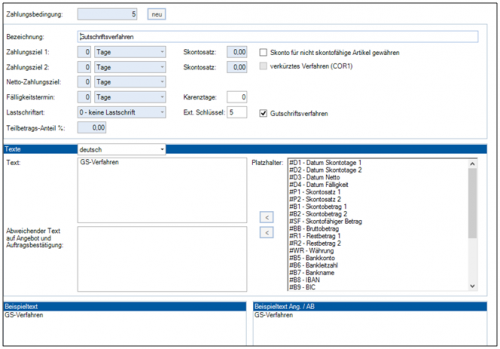 Über die Zahlungsbedingung wird gesteuert, ob ein Auftrag mittels Gutschriftsverfahren beglichen wird. Dazu ist der Haken „Gutschriftsverfahren“ zu aktivieren.