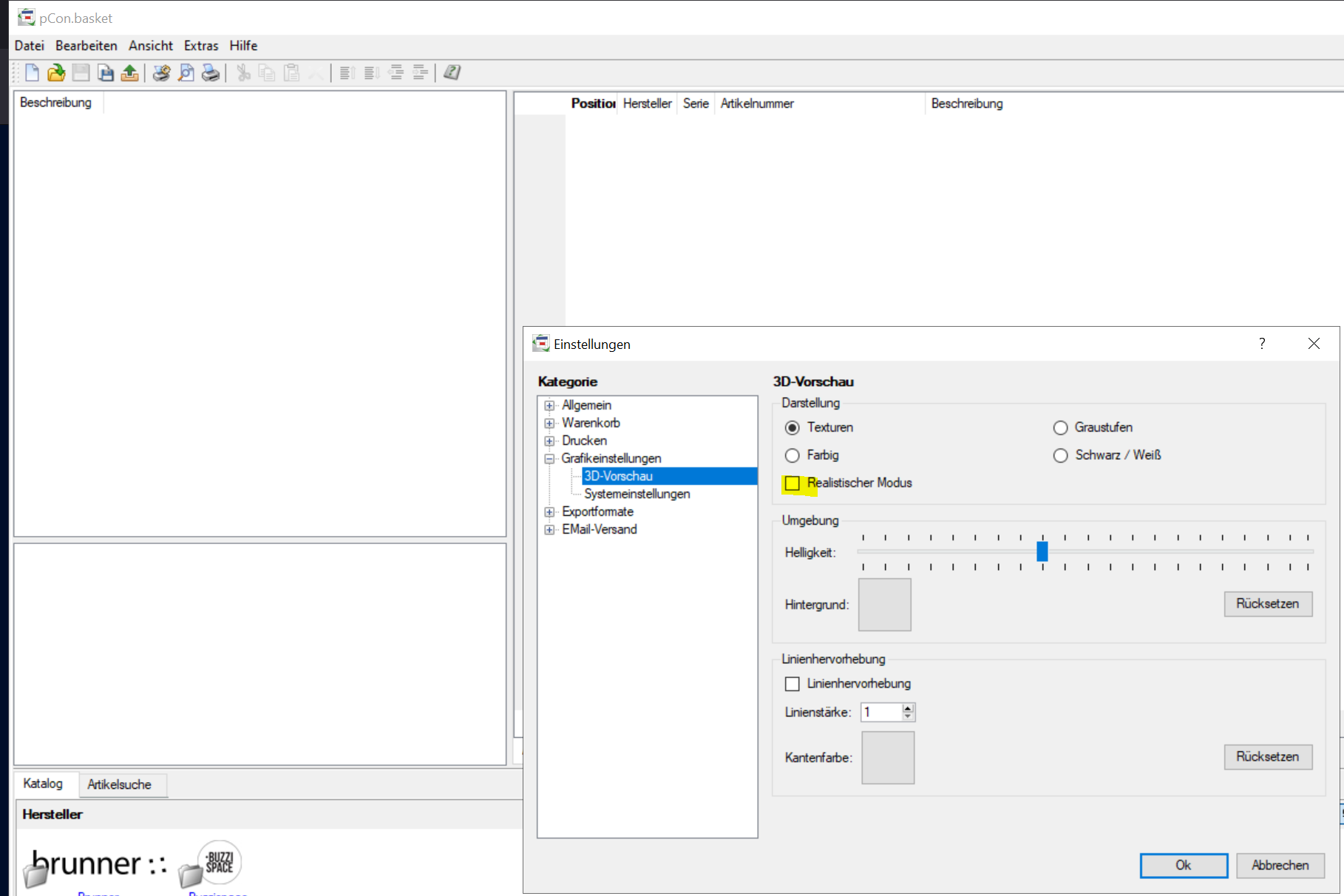 Wenn der pCon.basket bei Auswahl eines Artikels in „Konfiguration“ nur ein schwarzes Fenster anzeigt, liegt dies an der Grafikeinstellung.