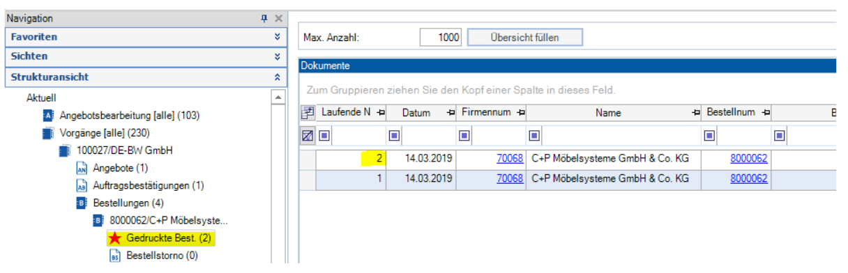 Damit erzeugt das System eine neue Version Ihrer Bestellung. Dies können Sie im Vorgang in den Bestellungen nachvollziehen.