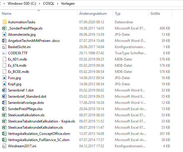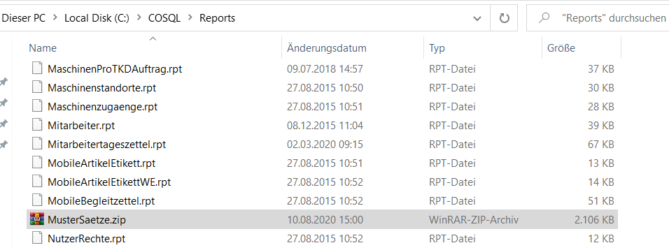 In diesen Ordner müssen die Mustersätze erneut abgelegt werden. Die Musterformulare sind in dem gleichen Verzeichnis abgelegt, unter dem Namen MusterSaetze.zip. In diesem ZIP-Archiv sind alle vorhandenen Mustersätze abgespeichert.