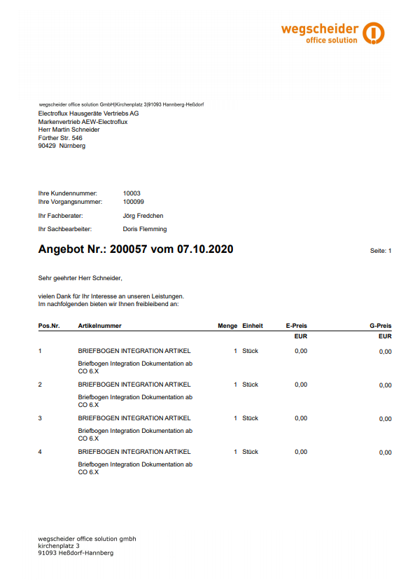 Briefbogenintegration Concept Office