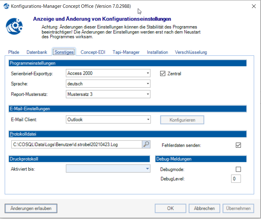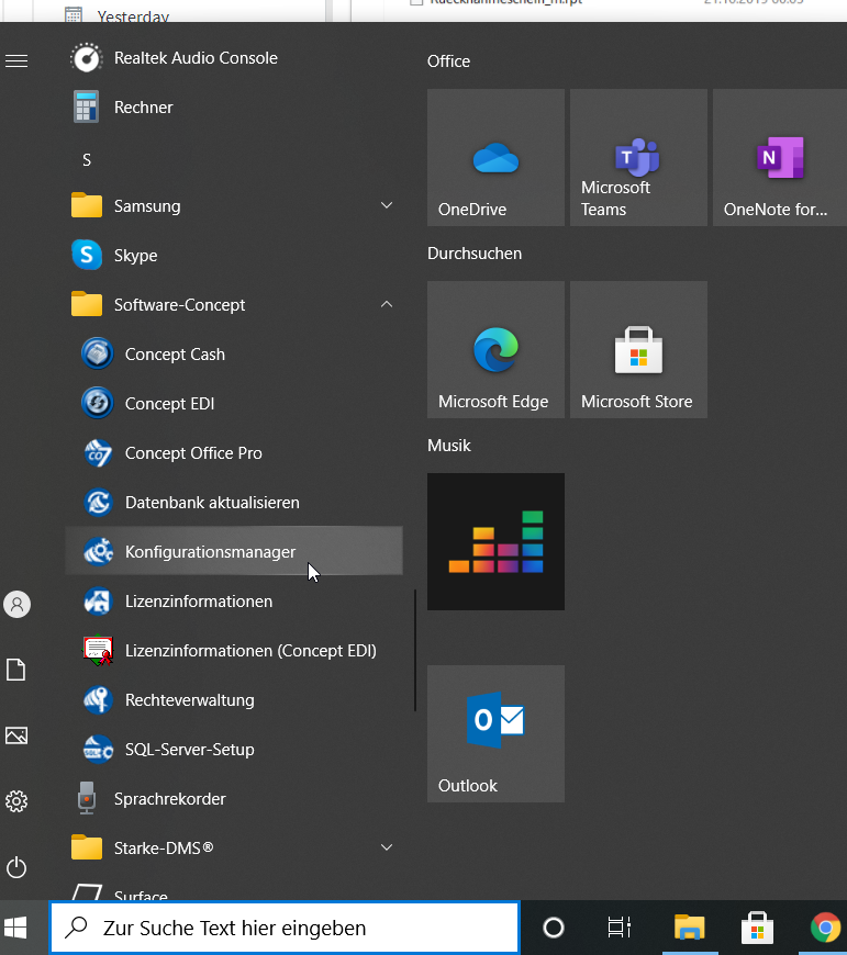 * Um den aktivierten Mustersatz heraus zu finden, muss auf die Windows Taste geklicht werden → Ordner Software Concept suchen → Konfigurationsmanager öffnen.