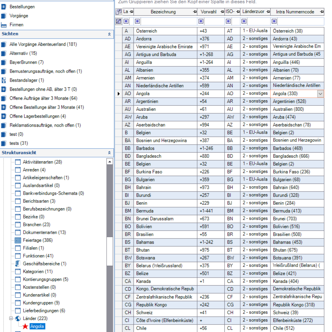 Zu finden in Weitere Stammdaten → Länder. Es sollten alle Länder gepflegt werden.