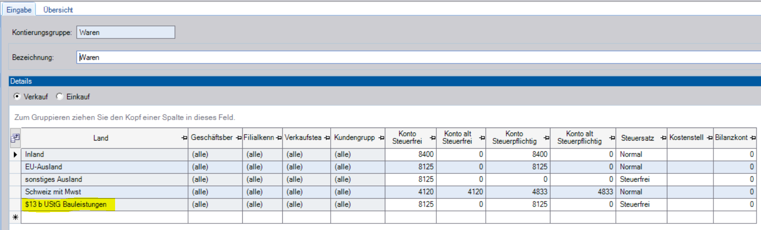 Dieser Fall ist problemlos und wird bei richtiger Eintragung der Kontierungsgruppen direkt angewendet.