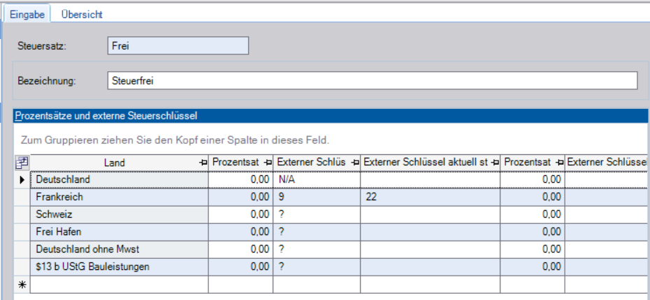 In den Sonderfällen muß in den Weitere Stammdaten → Länder ein zusätzliches Steuergebiet erstellt werden: