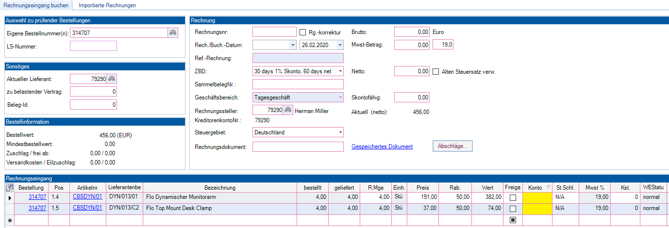 Dies muß der Anwender korrigieren. Wichtig ist auch, am Rechnungseingang das Steuergebiet zu kontrollieren. Dieses ist das Steuergebiet des Rechnungsstellers!