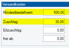 Nun können Sie in den Firmen einen Lieferanten auswählen und dort im Karteireiter „Lieferantendaten“ das Feld Mindestbestellwert und Zuschlag mit Werten belegen.