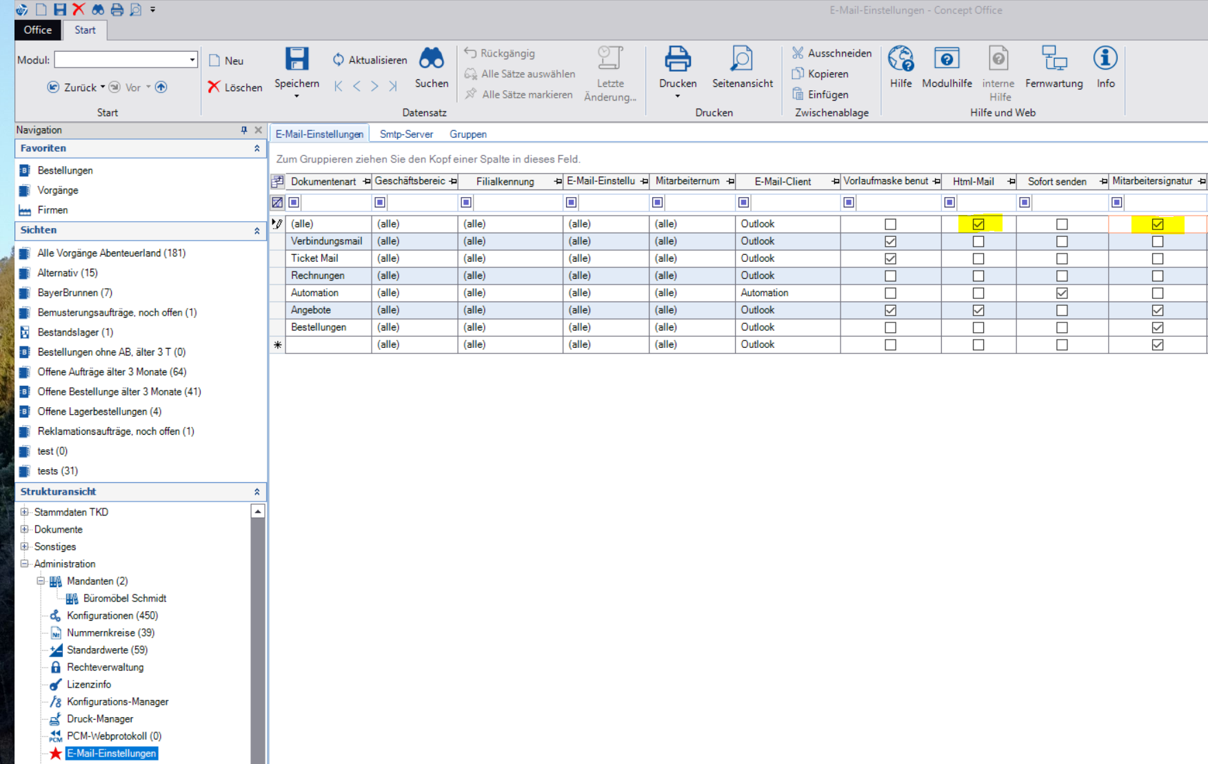 Danach einmal Concept Office neu starten und die Mailübergabe sollte wieder wie gewünscht vonstatten gehen.