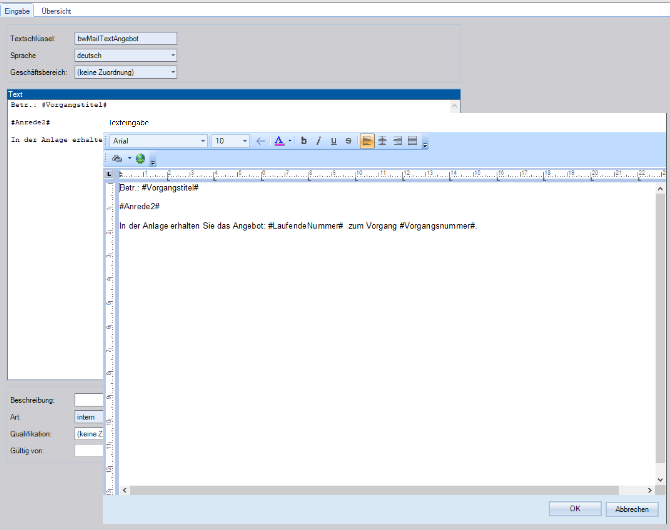 Der Textbaustein ist nun formatiert und wird künftig (wieder) übertragen. Sie erkennen bereits formatierte Bausteine am beigen Hintergrund.