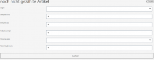 Die Selektion der Artikel kann über Lager, Warengruppe, Stellplatz von/bis, Artikelnummer und/oder dem letzten Zähldatum erfolgen.