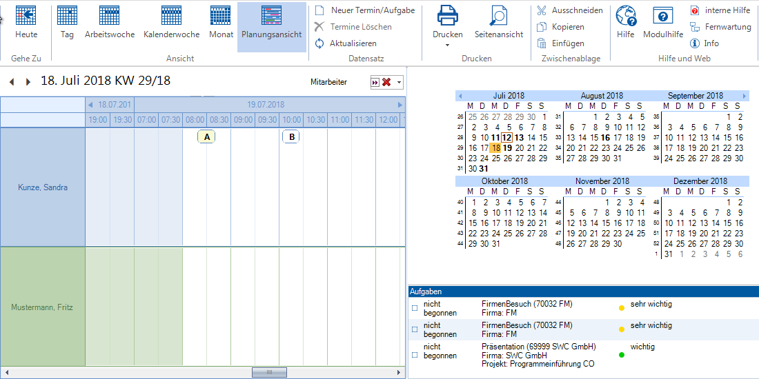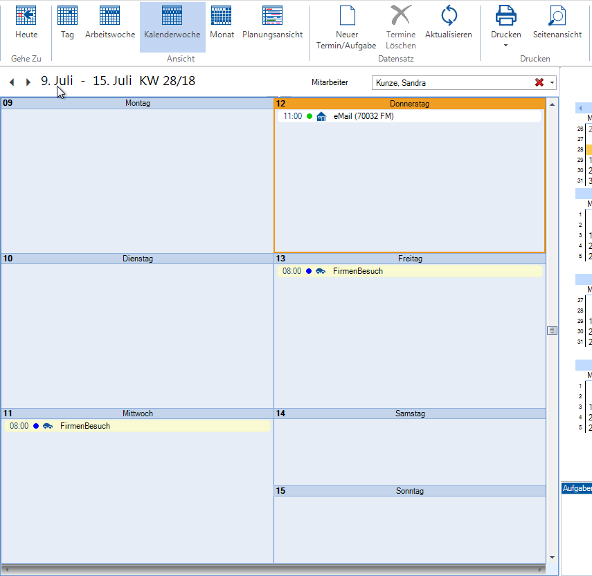 Der Kalender verfügt über mehrere Ansichten. Abhängig vom Verwendungszwecke eignen sich die Ansichten unterschiedlich.