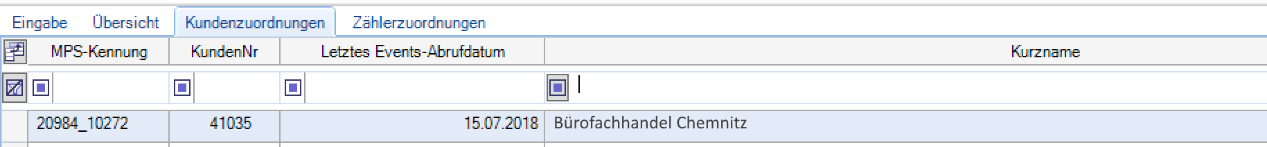Das Feld Letztes Event-Abrufdatum am MPS-Kunden legt fest, ab welchem Meldungsdatum MPS-Meldungen abgerufen werden.