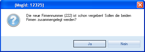 Wird die Frage mit Ja beantwortet, werden alle Daten der alten Firmennummer mit der neuen Firmennummer versehen, das heißt die Firmen werden zusammengelegt.