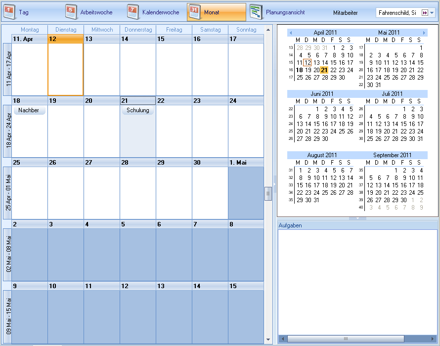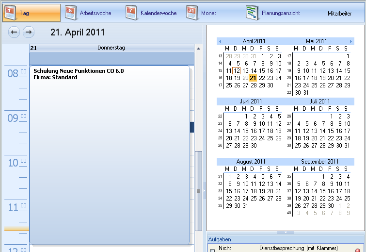 De agenda beschikt over meerdere weergaven. Afhankelijk van de gebruiksdoeleinden tonen ze een bijbehorend beeld.