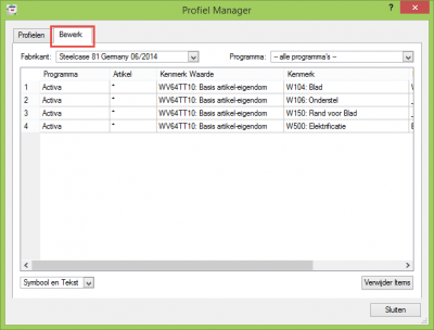 Ja, hiervoor worden allereerst de posities gemarkeerd. Daarna in de profiel manager bij profiel toewijzen op „Selectie“ klikken. Daardoor worden de gemarkeerde posities op het profiel gebracht.